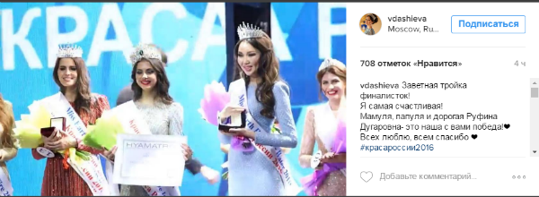 - Ровно год назад на «Красе России 2015» я представляла нашу республику одна и была одной из самых юных участниц, при этом став суперфиналисткой конкурса. За это мне дали возможность приехать на конкурс ещё раз, когда стану совершеннолетней. И я всё-таки решила не тянуть и ехать в этом году, - прокомментировала ранее «Байкал-Daily» Виктория Дашиева.