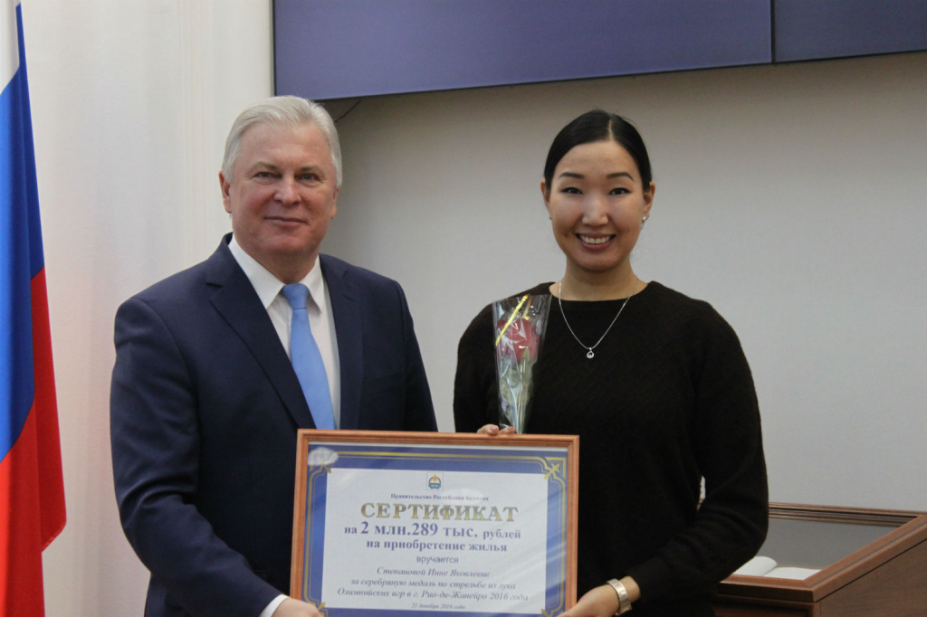 Награждена была призёр Олимпийских игр в командном зачёте в Рио Инна Степанова. Помимо предусмотренной ранее награды за серебро игр, она – первая в республике - получила сертификат на двухкомнатную квартиру.