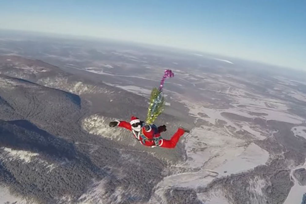 Необычно поздравили с Новым годом иркутские парашютисты. Три спортсмена, переодевшись в костюмы Санта Клаусов, прыгнули с парашютом. Весь процесс был записан на видео.