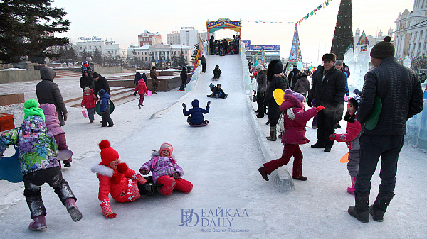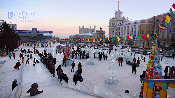 На главной площади города проходят представления, дети задорно катаются с горок, на реках устроили подлёдную ловлю рыбы.