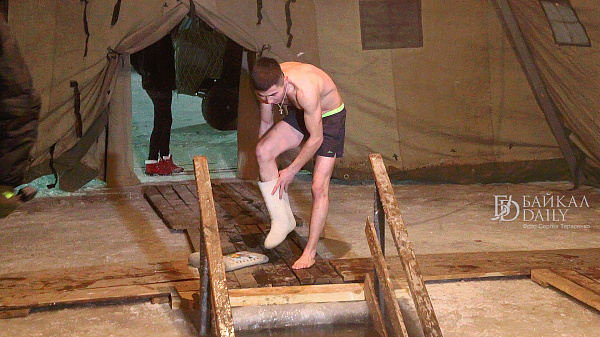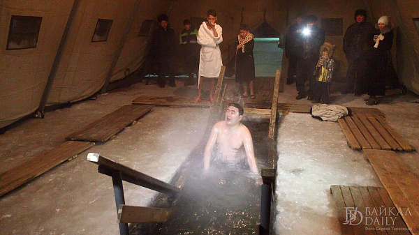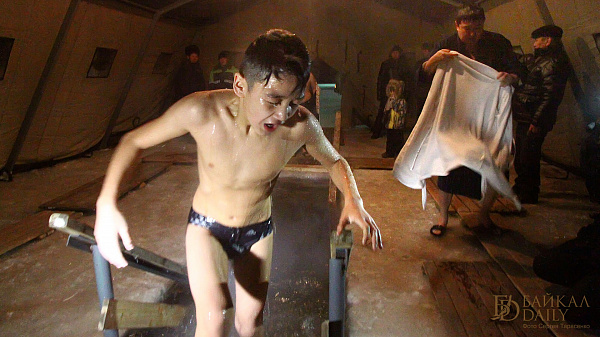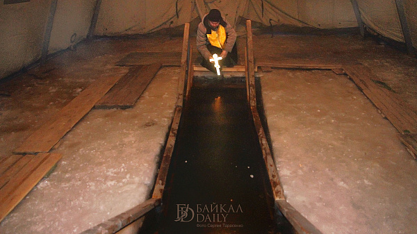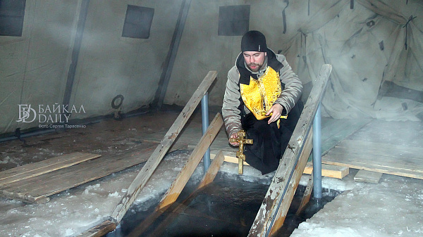После освящения первые верующие погрузились в купель. Она была организована на реке Селенга, возле стадиона «Спартак». Фоторепортаж с утреннего обустройства купели можно посмотреть здесь.