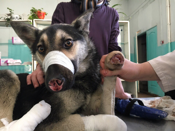 Как сообщал «Байкал-Daily», собака, которой живодёры три лапы и нос, поступила в клинику «МедВет» 16 декабря.