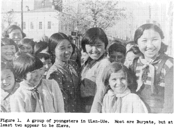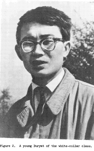 Например, отчёт от 1966 года под названием «Люди и жизнь в Улан-Удэ» даёт любопытные данные о количественном и национальном составе столицы республики. Так, буряты на то время составляли около 10% от общего числа проживающих в Улан-Удэ, примерно 30 тысяч человек. В основном они были мелкими служащими и рабочими с угольных шахт Гусиноозерска и Гусиного озера. Американские исследователи также приводят антропометрические данные о бурятах: «Невысокого роста, крепко сбитые с узкими плечами. У многих бурят наблюдается кривизна ног. Цвет кожи варьируется от желтого до коричневатого, волосы прямые, черные, жесткие. Растительность на лице редкая. У бурят широкие лица с высокими скулами, плоский нос, раскосые и узкие карие глаза».
