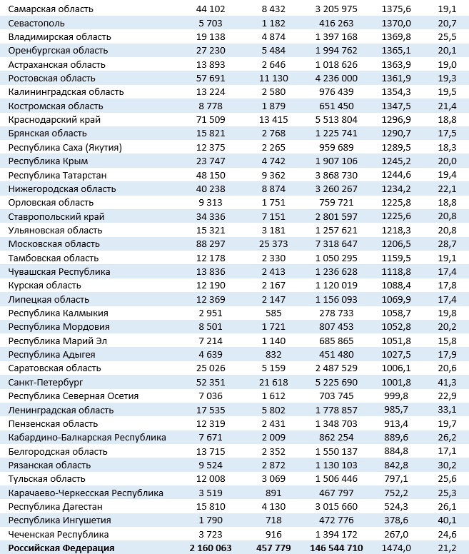 Отметим, что все регионы Сибирском федерального округа входят в первую половину рейтинга. А три региона, уже названные Тыва, Забайкальский край и Бурятия – в топе.