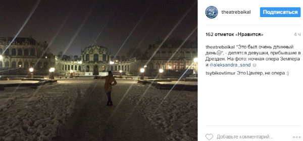Как сообщал «Байкал-Daily», 3 февраля женская половина балета театра «Байкал» выступит на ежегодном «балу богатых и знаменитых» в Дрездене, Германия. Девушки вылетели из Улан-Удэ 1 февраля, и сейчас уже находятся на месте.