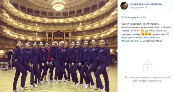 Женская половина театра песни и танца «Байкал» готовится к выступлению на Semperopernball в Дрездене. Как сообщал «Байкал-Daily», организаторы, впечатлённые выступлением артистов на балу в 2015 году, пригласили на мероприятие этого года часть коллектива. Девушки выступят с «Танцем лебедей».