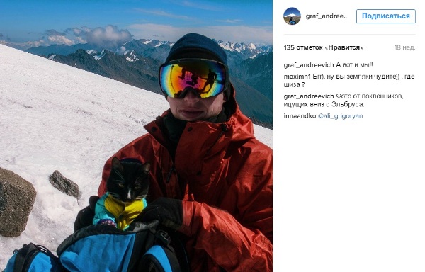 Инстаграме», когда вместе с хозяином покорил Эльбрус в прошлом году.