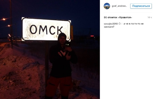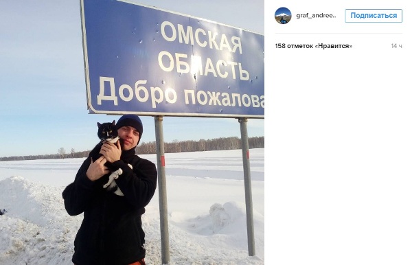 Спустя несколько часов друг за другом появился фотоотчёт о пути: Граф уже пересёк сначала границу Тюменской, а потом Омской областей. И уже проехал Омск.