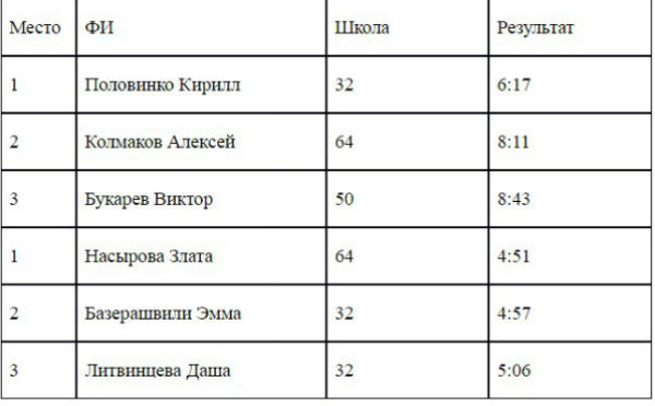 Среди команд победу одержала школа № 32, второе место у школы № 64, третьей стала команда школы № 50.