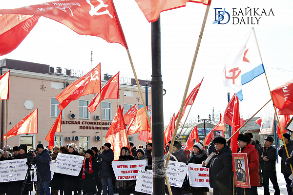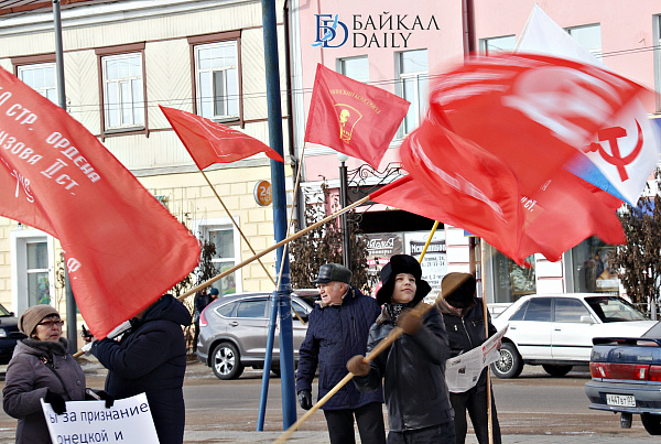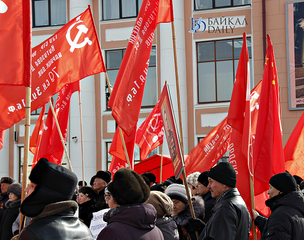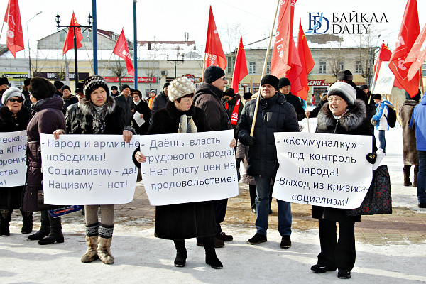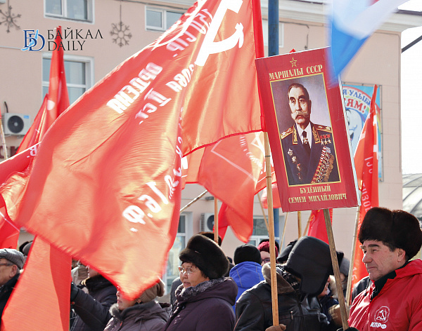 В митинге приняли участие больше сотни улан-удэнцев. С трибун от представителей КПРФ прозвучали поздравления и яркие лозунги.