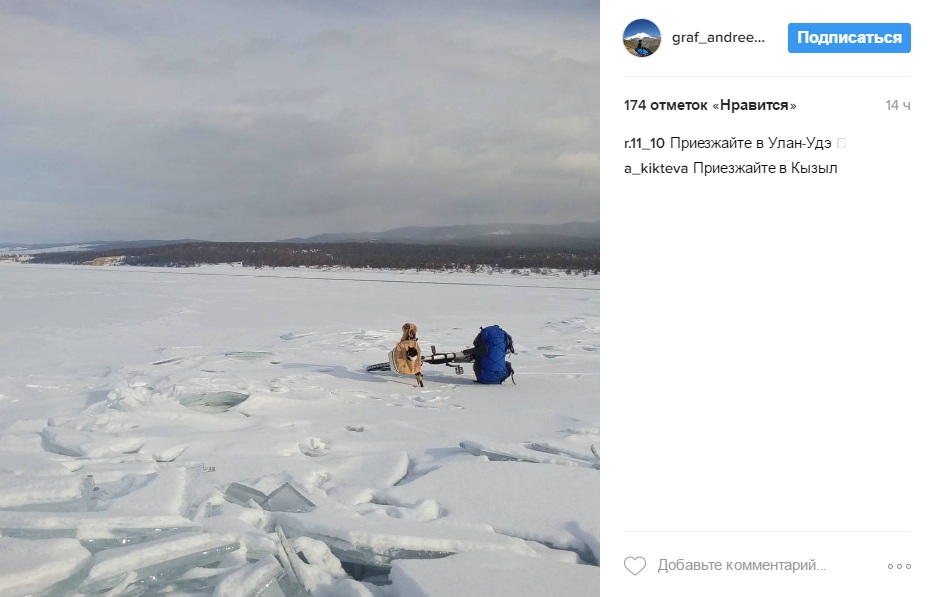 – Всё отлично! Погода радует, около 0 градусов. Пока всё по плану! Самочувствие – активное, – рассказал E1.RU Андрей Останин. – Гуляем, катаемся! Завтра отчаливаем в автономку на 2 ночи вокруг Ольхона. Спать будем на льду в палатке. Графа на лёд редко отпускаю, много снега. Чистого льда мало, по нему он не скользит. Тепло так, что даже спецкомбез не нужен.