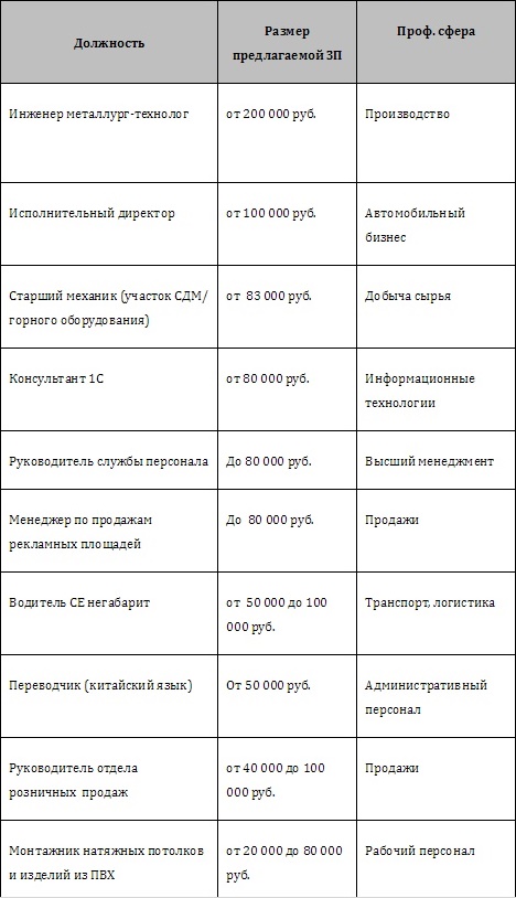 Так, самой дорогой вакансией месяца стало предложение для инженера металлурга-технолога с зарплатой от 200 тысяч рублей. При этом, среднее вознаграждение по городу составило 25 тысяч рублей.