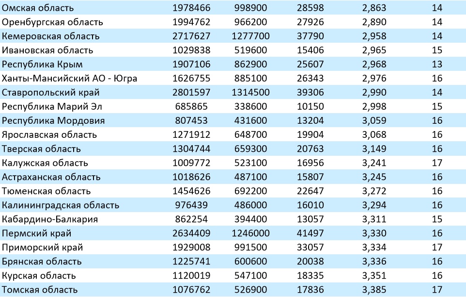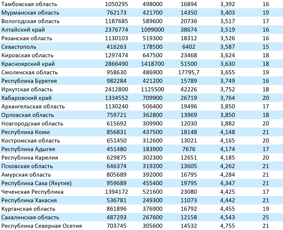 Рейтинг составлен «Байкал-Daily» по данным Росстата на сентябрь 2016 года о численности занятого населения и численности работников государственных органов России и субъектов, а также органов местного самоуправления и избирательных комиссий муниципальных образований. А также по данным о численности населения регионов на 1 января 2016 года.
