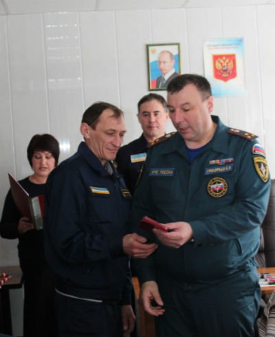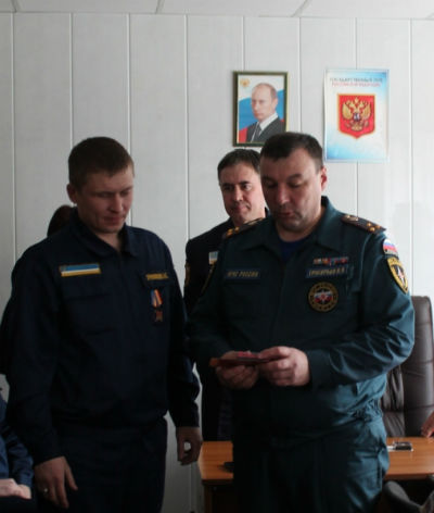 Врио начальника Главного управления МЧС по Бурятии Константин Григорьев вручил медали «За отвагу на пожаре» пожарным Муйского гарнизона.