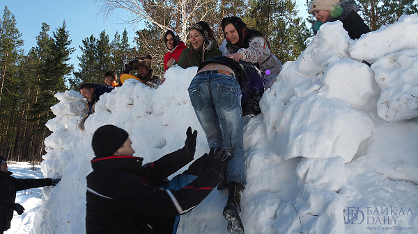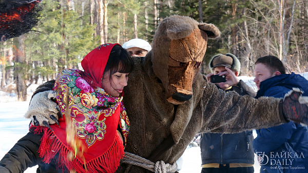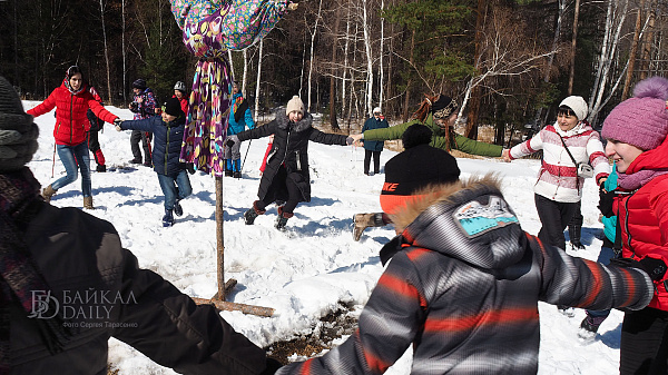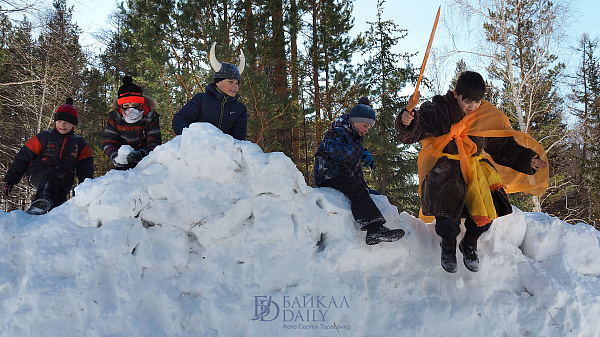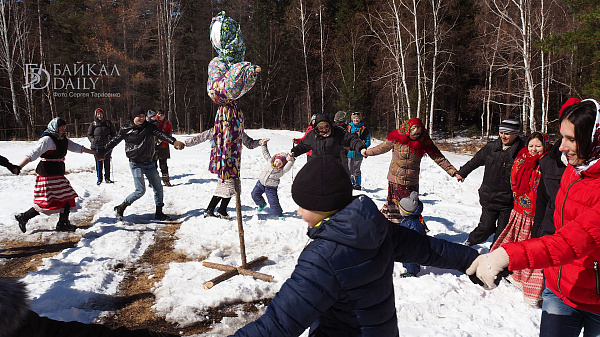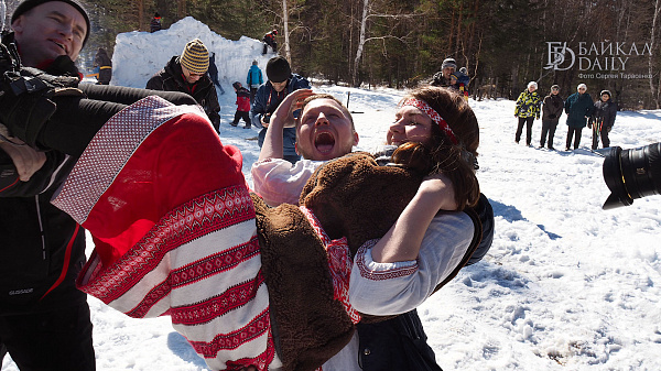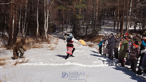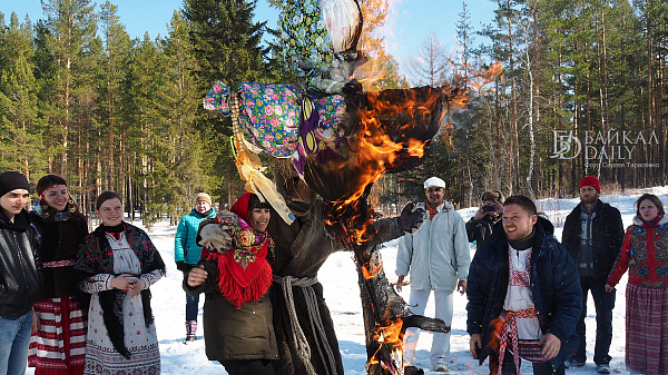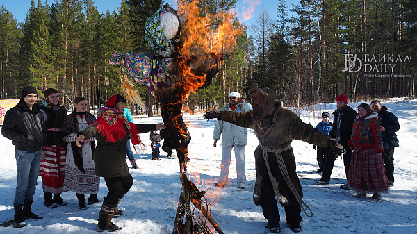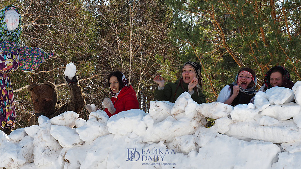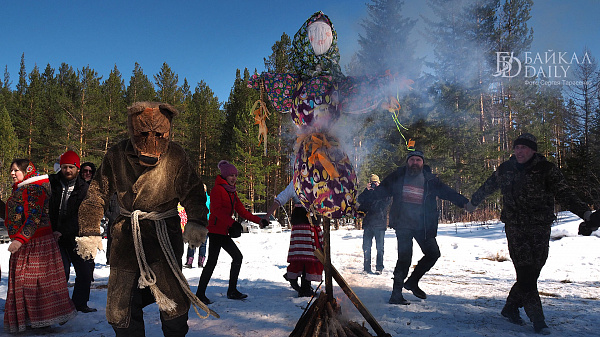 На праздновании провели обряд пробуждения медведя, брали снежную крепость и сжигали чучело Марены.