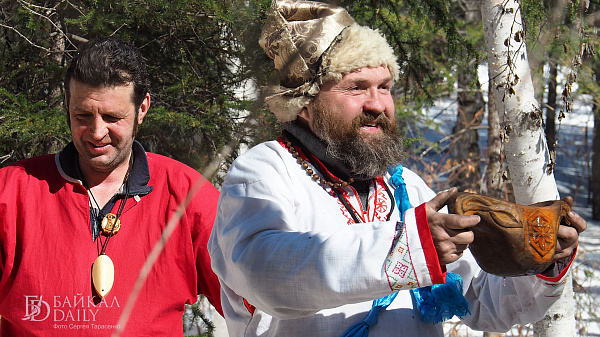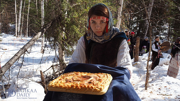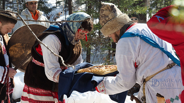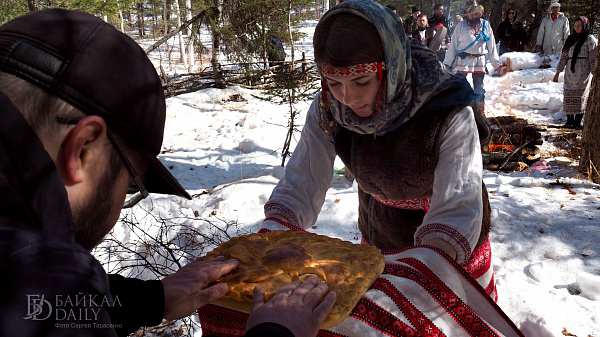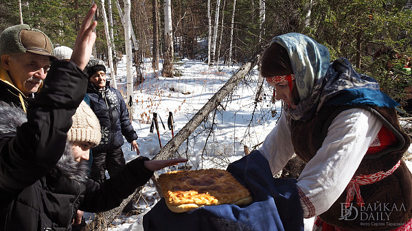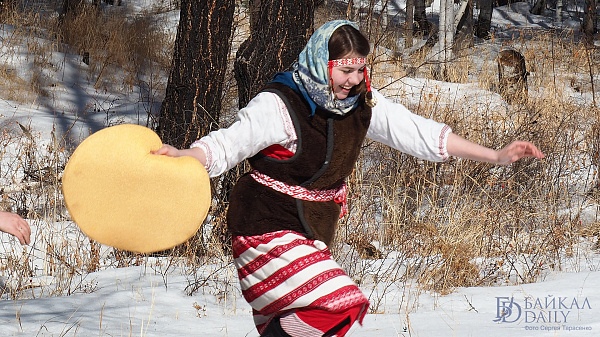 На гуляниях участники сыграли в славянские игры и устроили пир с блинами.