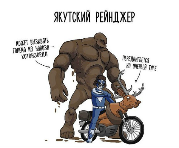 В Сети набирают популярность мемы под названием «Могучие рейнджеры России». Изображения выложены в паблике Duran с аудиторией более 750 тысяч человек, а также в других группах. Автор рисунков размышляет, какие герои могли бы быть из национальных регионов страны. Так, к примеру, глава Татарстана Рустам Минниханов представлен в образе рейнджера с миниганом, а якутские рейнджеры используют големов из навоза и передвигаются на мотоцикло-оленях.