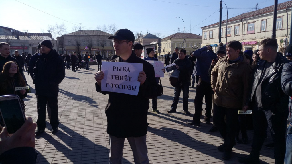 Однако одиночный пикет на площади Революции всё же состоялся. С плакатом «Рыба гниёт с головы» встал Евгений Буянин, экс-лидер бурятского отделения партии «Родина». Впрочем, как заявил Евгений Буянин, он не представляет какую-либо политическую организацию, а пришёл сюда как физическое лицо, как человек, который посмотрел фильм Навального «Он вам не Димон» и остался в возмущении от информации. При этом Буянин подчеркнул, что не входит в число организаторов несостоявшегося пикета.