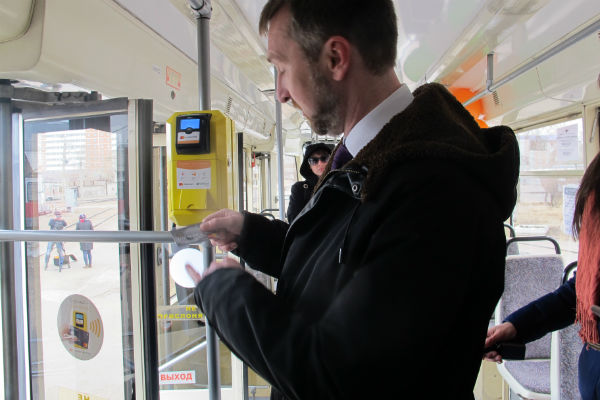 С 4 апреля в Улан-Удэ станет доступна оплата проезда в трамвае банковской картой. Все 58 вагонов парка МУП «Управление трамвая» уже оснащены специальными транспортными валидаторами – терминалами для оплаты.