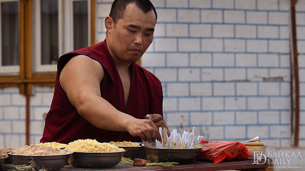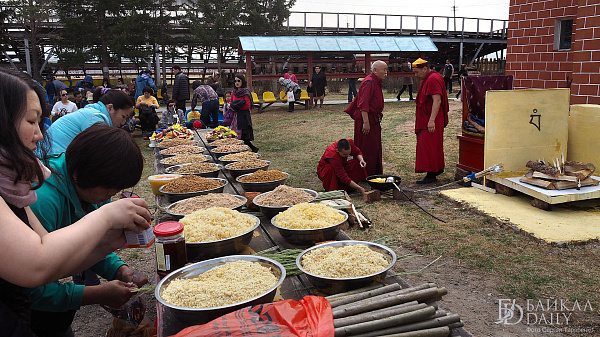 На молебен приносят молочные продукты, печенье, конфеты, сладости (далага), топлёное масло, жаренную муку.