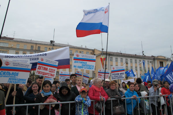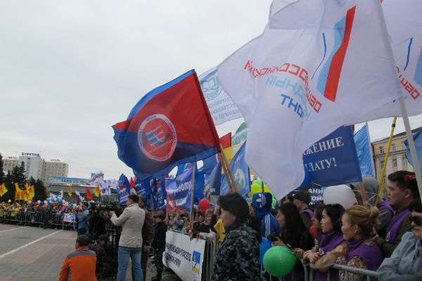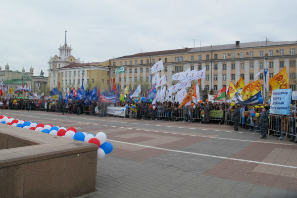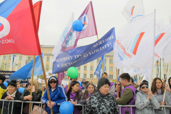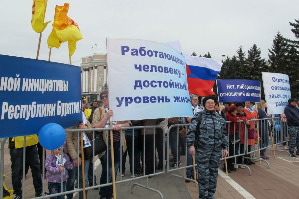 Сегодня на площади Советов в Улан-Удэ под девизом «За достойную зарплату, работу, жизнь» состоялся праздничный первомайский митинг. Участники развернули десятки транспарантов с лозунгами, вроде «Достойная зарплата - на одну ставку», «Требуем МРОТ на уровне прожиточного минимума», «Человеку труда - уважение и достойную зарплату», «Нет либерализации трудовых отношений на малых предприятиях» и др.