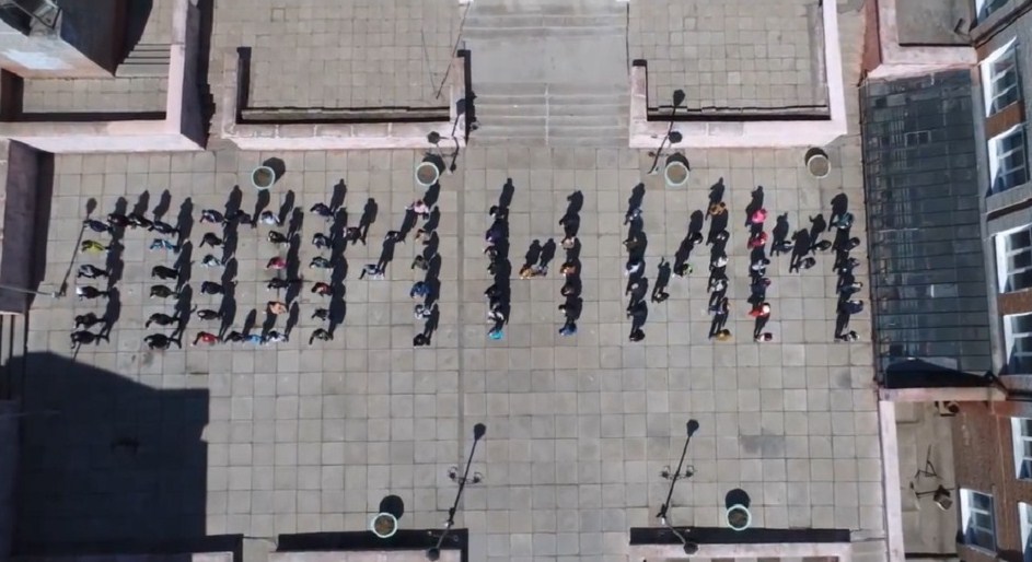 Участие в акции приняли около 70 человек. Видеоролик флешмоба снимали с высоты птичьего полёта. Сопровождается видео знаменитой песней военных лет «Журавли».