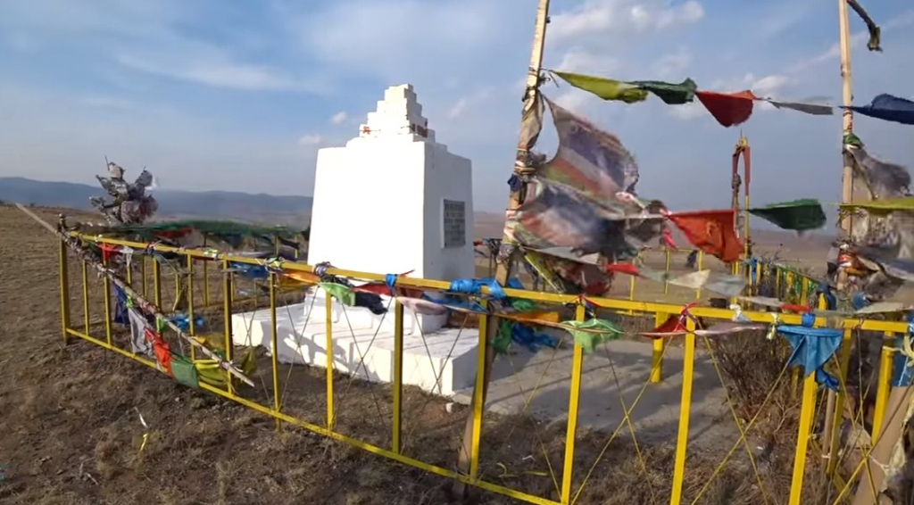 На видео представлены сакральные места долины – дацан, буддийская ступа, развевающиеся молитвенные полотна.
