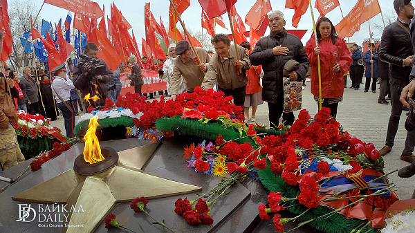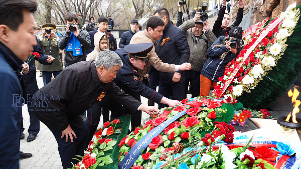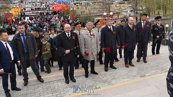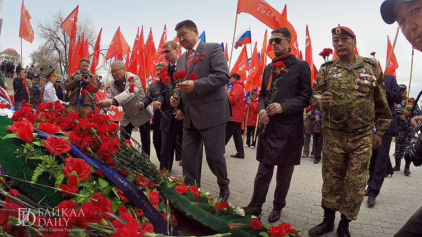 Затем к Мемориалу понесли десятки венков - от правительства Бурятии, администрации города, УФСБ, МВД, УФСИН, налоговой службы, общественных организаций, партий и пр. Официальные лица возложили цветы к Вечному огню. Поддерживаемые близкими и волонтёрами, путь от подножия к памятнику с цветами преодолели и сами ветераны.