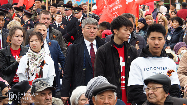 С трибуны выступили первые лица Улан-Удэ и Бурятии. Так, и.о. главы республики Алексей Цыденов напомнил, что каждый третий воин из более 120 тысяч ушедших из Бурятии на фронт не вернулся домой.