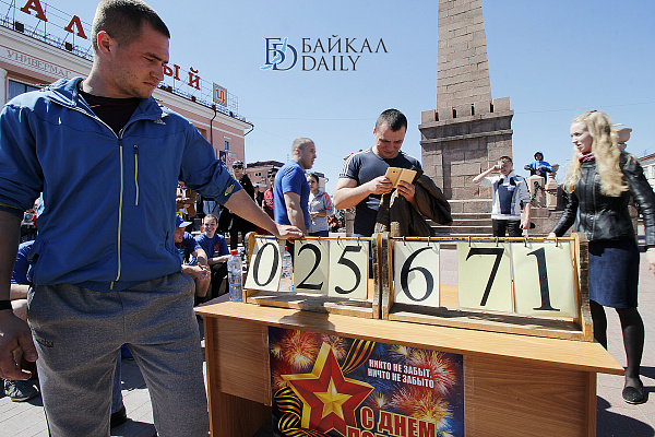 На площади Революции в Улан-Удэ началась ежегодная акция «Рекорд Победы», посвящённая победе Советского народа над фашисткой Германией.
