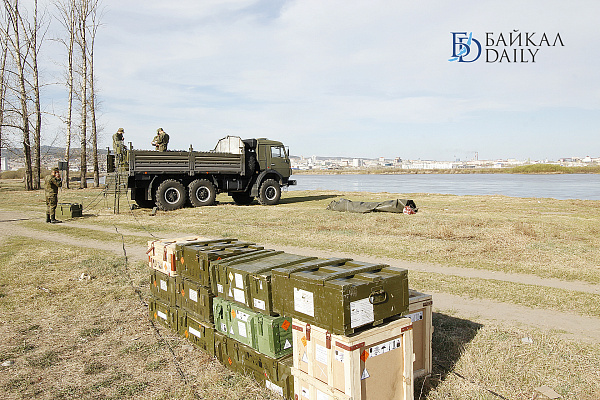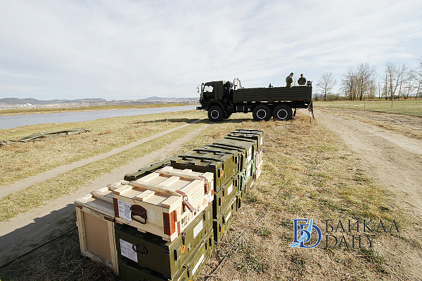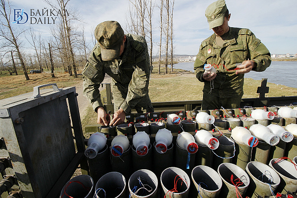 В Улан-Удэ военнослужащие завершили подготовку к праздничному салюту в ознаменование 72-й годовщины Победы. На острове Комсомольский, где состоится салют, установлены артиллерийские орудия.