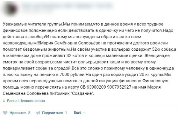 Нужна приюту и финансовая помощь. Реквизиты и номер карты Марии Семёновны указаны в официальной группе приюта для животных в Улан-Удэ «Создание».