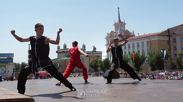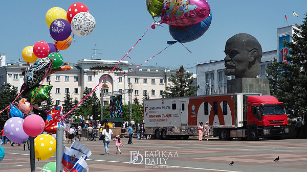 На площади Советов с полудня идёт праздничная программа. Стартовала она праздничным концертом детских коллективов Улан-Удэ «Мы дети твои, Россия!». На сцену вышли ушуисты из детско-юношеской спортивной школы № 18 «Золотой дракон», детско-юношеского центра «Безопасное детство», ансамбли «Вдохновение», «Веснушки», «Потешки», «Саран Туяа» и др.