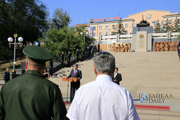 Среди выступающих на митинге были также и.о. главы Бурятии Алексей Цыденов, командующий 36 армией генерал-майор Дмитрий Коваленко, председатель Республиканского Совета ветеранов вооруженных сил и правоохранительных органов Ревомир Гармаев.