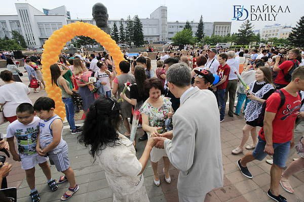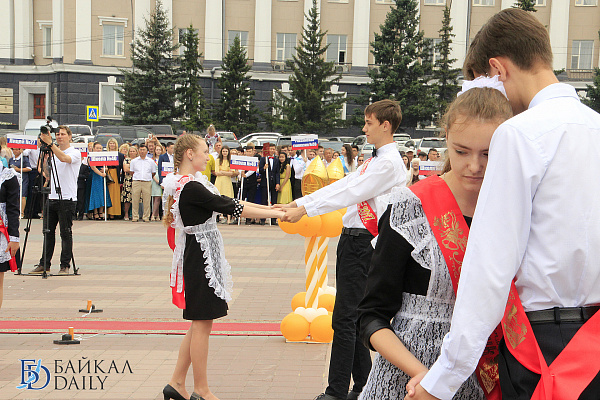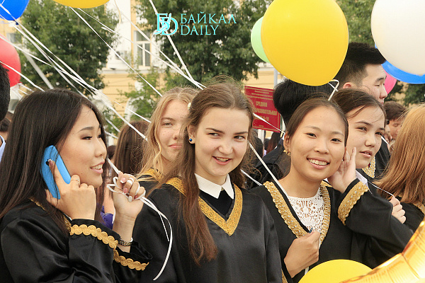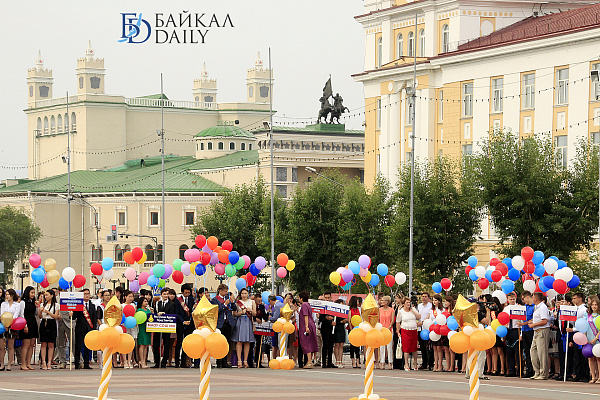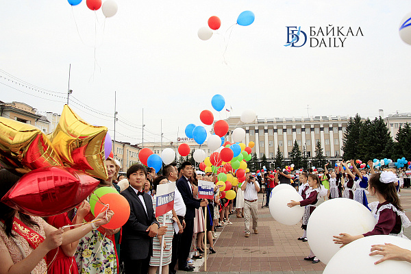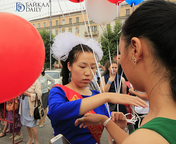 Традиционно в начале праздника вчерашние школьники запустили в небо воздушные шары. С поздравительной речью и пожеланием дальнейших успехов выступил мэр Улан-Удэ.