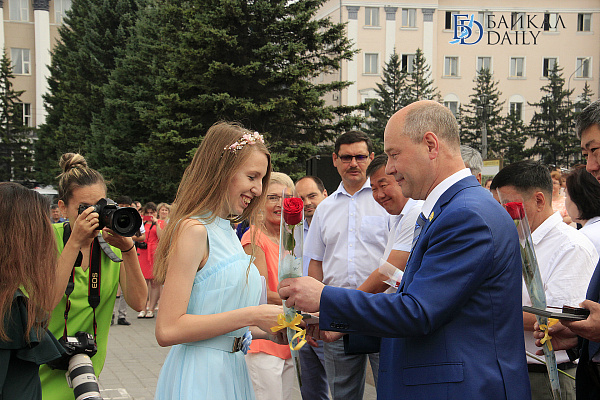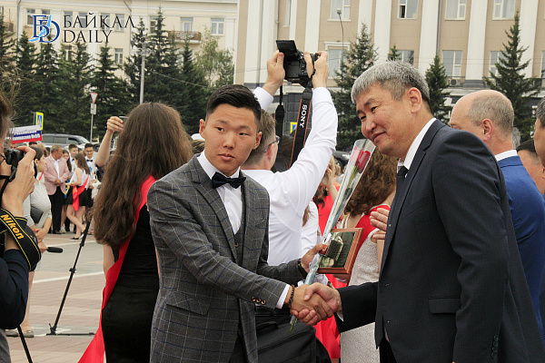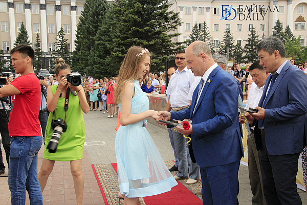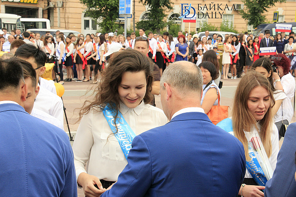Сегодня утром на площади Советов Улан-Удэ состоялась торжественная церемония вручения медалей выпускникам «За особые успехи в учении». Поздравить медалистов и вручить им заслуженные награды пришли первые лица республики и города во главе с мэром Александром Голковым.