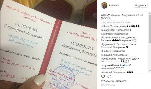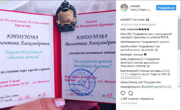 Кроме того, несколько артистов удостоены медалей «За заслуги перед Республикой Бурятия».