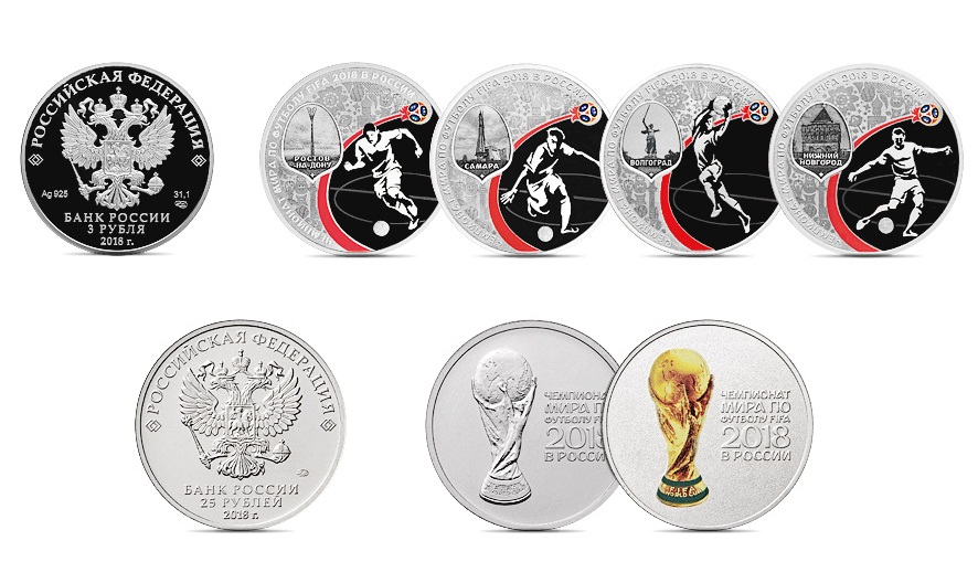Сегодня Банк России выпускает в обращение памятные монеты, посвящённые проведению в России чемпионата мира по футболу FIFA 2018 года.