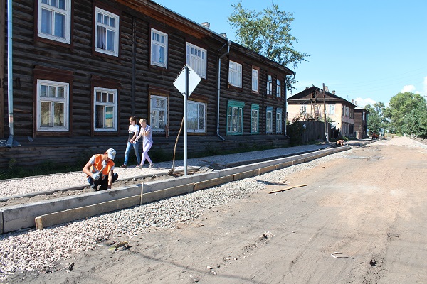 В микрорайоне Аэропорт благоустройство придомовой территории по программе «Формирование современной городской среды» выполнили на 50 %. Стоимость этих работ – более 2,5 миллионов рублей. На ремонтируемых участках установили бордюрные камни, ведутся работы по планировке. Дороги обещают сдать до конца августа.