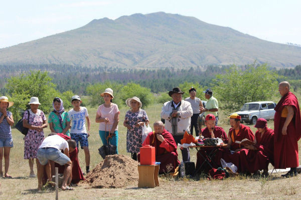 11 лет назад при реставрации старинной ступы здесь была обнаружена статуя Будды. Тогда же был построен новый субурган, а теперь ламы и верующие приступили к строительству храма.
