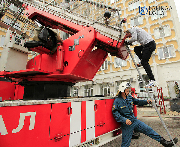 Сегодня в центре Улан-Удэ прошло пожарно-тактическое учение в гостинице «Бурятия» - крупнейшем гостиничном комплексе республики. Согласно легенде учений, из-за короткого замыкания проводки в номере на пятом этаже произошло загорание. Информацию о пожаре администратор гостиницы сразу же передал в пожарно-спасательную службу МЧС России, сообщив, где расположен очаг возгорания и сколько людей находится в здании.