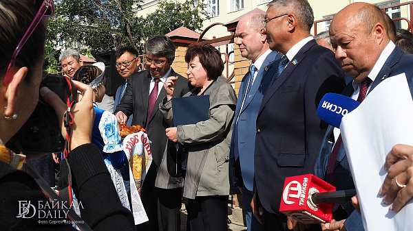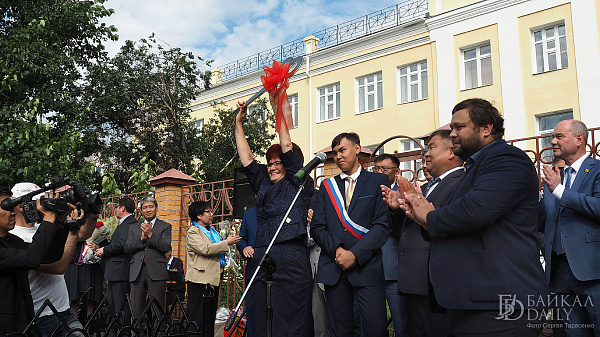 От правительства республики школе вручили картину с изображением Байкала. Директор школы Лидия Бичевина поблагодарила всех, кто принял участие в реконструкции и напомнила, что в этом школа празднует 100-летие.