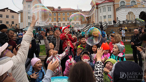 Самых маленьких зрителей развлекли шоу мыльных пузырей. Дети радостно ловили огромные переливающиеся шары.