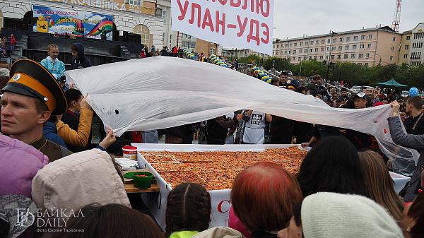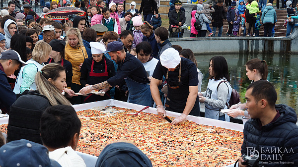 Кроме того, все желающие смогли бесплатно попробовать «Самую большую пиццу» весом 63 килограмма. На её изготовление ушло по 20 килограммов теста, сыра, начинки и соуса.