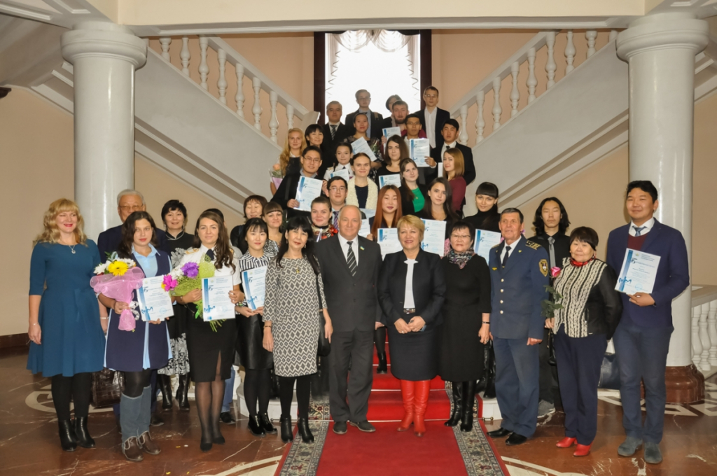 В торжественной церемонии приняли участие члены комиссии по республиканским стипендиям, первый заместитель министра образования и науки Бурятии Галина Фомицкая, председатель комитета Народного Хурала РБ по социальной политике Александр Стопичев и победители конкурса.