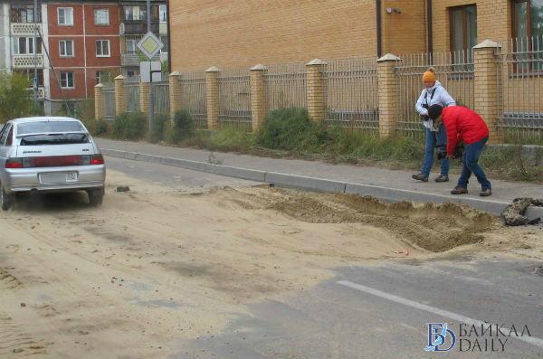 - Вчера, 27 числа, здесь была аварийная ситуация на сетях теплоснабжения, компания «ТГК-14» производила ремонтные работы. Вскрыли асфальтовое покрытие, выполнили ремонт на сетях теплоснабжения. Завершили работы, сделали обратную засыпку, и, как видите, здесь остался грунт. Заявка вчера же была подана в отдел планового ремонта «ТГК-14» на восстановление асфальта, - рассказал Максим Большаков, заместитель начальника управления по развитию территорий и земельному контролю Октябрьского района Улан-Удэ. - Сети теплоснабжения - не секрет, что они находятся в ветхом состоянии, и никто не может предугадать, где, в каком месте произойдет порыв трассы.