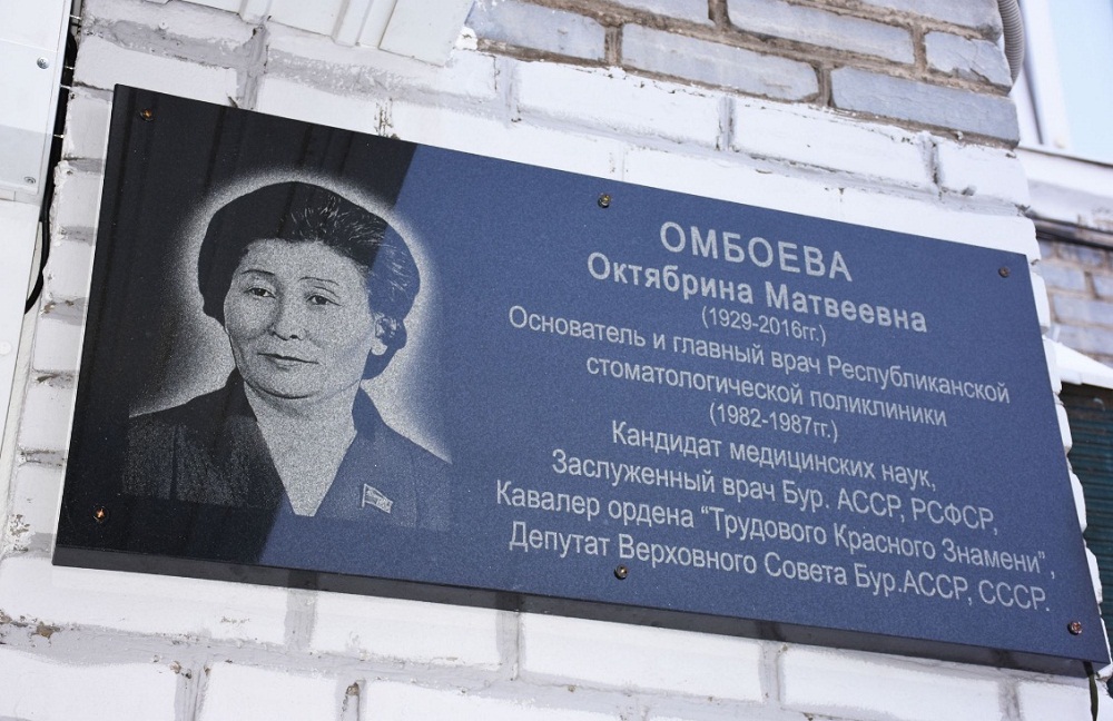 8 декабря на здании Республиканской стоматологической поликлиники появилась мемориальная доска в память об известном враче, выдающемся организаторе здравоохранения, ученом и общественном деятеле Октябрине Матвеевне Омбоевой.
