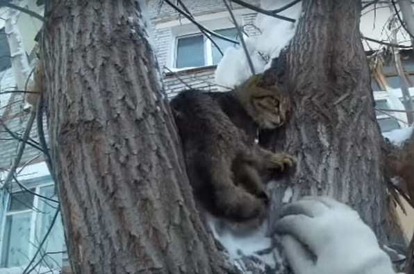 В зимний морозный день известный спасатель животных из Улан-Удэ Роман Добрынин отправился спасать замерзающего котёнка, залезшего на дерево. С просьбой о помощи к нему обратилась местная жительница. Котёнок просидел на дереве семь дней как раз в те дни, когда активно шёл снег. Животное залезло на большую высоту, оказавшись на уровне между третьим и вторым этажом соседних квартир.