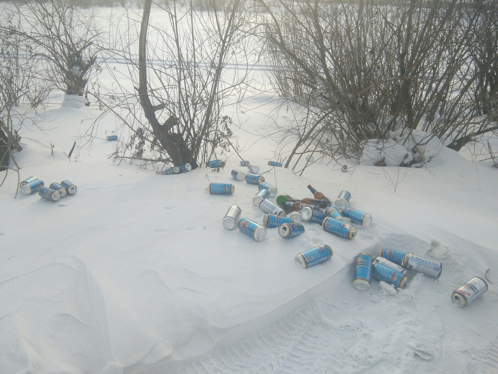 Сегодня в Улан-Удэ мужчина выбросил целую коробку пустых пивных банок у реки. Вопиющую сцену запечатлели в Железнодорожном районе.