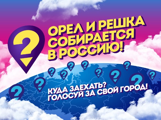 «Орёл и решка» готовится к новому сезону! На этот раз ведущие отправятся не куда-нибудь в Африку или Индию, а поедут по нашим российским городам. Кто попадет в объективы операторов, решит народное голосование. Хочешь увидеть свой город в популярной программе? Тогда голосуй за него», - говорится на сайте телеканала «Пятница».